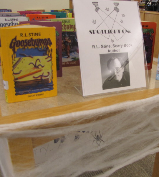 This month’s “Spotlight On” is R.L. Stine, complete with cobwebs and spiders to play up the Halloween theme.