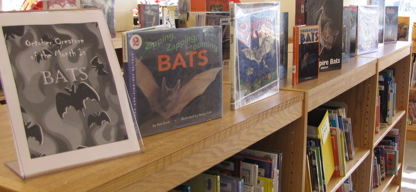 The October “Creature of the Month” display features bats. Very spooky, I had fun with all the displays this year.