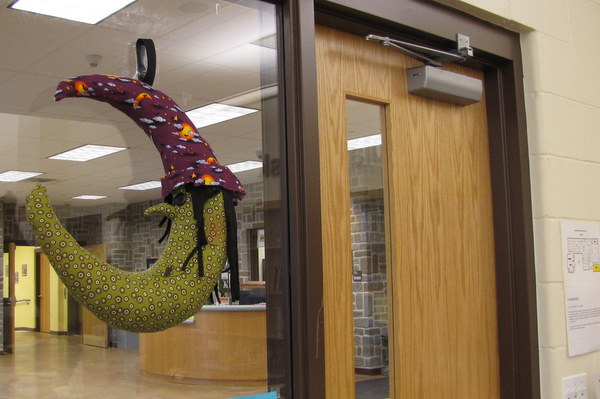 The second one went much faster than the first. The purple hat witch is for school, and the black hat witch is hanging on our front door now. I picked slightly more sophisticated fabrics for the home witch, at least as sophisticated as Halloween-appropriate fabrics can get. I’m happy with both of them, and now that’s one more thing I can add to my decorations for this year.