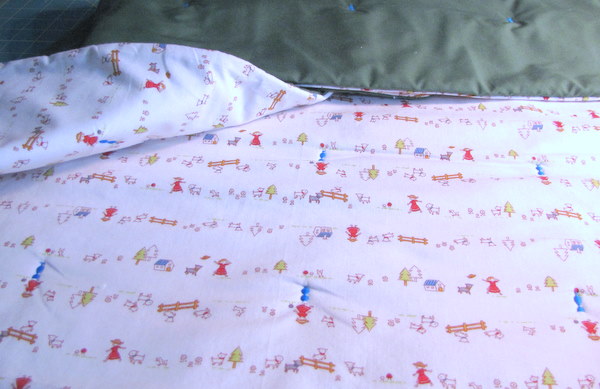 I haven’t made one of these blankets since India’s blanket back in February. This is the 5th one I’ve made, and this time I used a thin cotton batting instead of the extra loft synthetic. I doubled it over to make it a little thicker, and it made me crazy. It just didn’t sew up as neat and easy as the other blankets, so I have to think hard about how I’ll make these in the future.