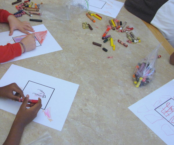 I started out by reading them Antoinette Portis’s Not a Box and Not a Stick. Fabulous books, I was observed by my principal doing this lesson and she loved them. Then I gave each student a paper with a box on it, and we used our imaginations to make the box into whatever we wanted. They took those home, and we were off to a great start.