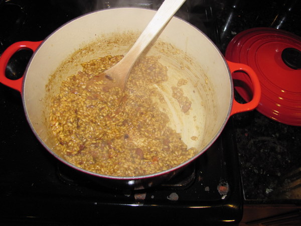 This was an interesting one. It’s another Ina Garten recipe, I really am in love with her food lately. I could eat roasted pieces of butternut squash all day long, like candy. So I’ve been wanting to try out some fall recipes with its yumminess full center. This recipe had kind of a crazy flavor. It’s very savory with bits of sweet squash. There were lots of comments left about this recipe on Food Network saying it was too salty and yet also bland at the same time. I could see that as it was cooking, so I actually more than doubled the amount of white wine called for in the recipe and kept the pancetta (I used bacon) at the amount used for the full recipe (this is halved for 2). That mellowed out the flavor and made it taste a little more sophisticated, but I couldn’t really taste the saffron. Adam really liked it, and I did as well. But I might try another recipe for this sometime to compare.