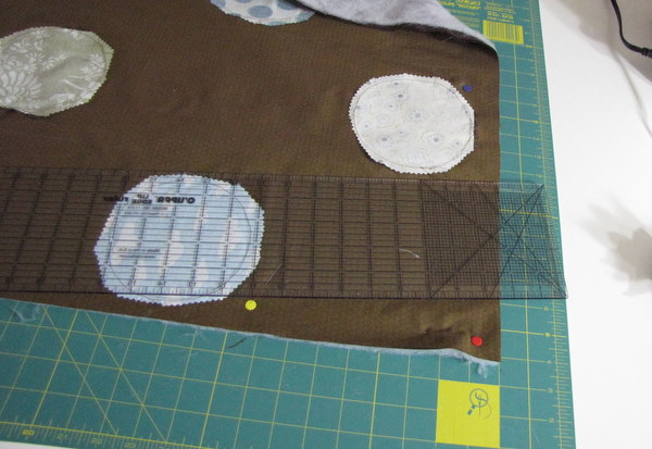 I finished sewing all the circles on the other night, and I decided to just trim down the edges to handle the hole problem. That worked well. So I sewed and trimmed all the circles, then tonight I finished it.