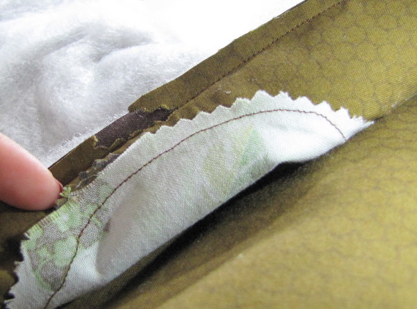 I don’t know if you can see it, but this is where the hole was. I trimmed down that edge and then sewed the seam so it went around the hole, leaving the hole invisible from the front. It worked.