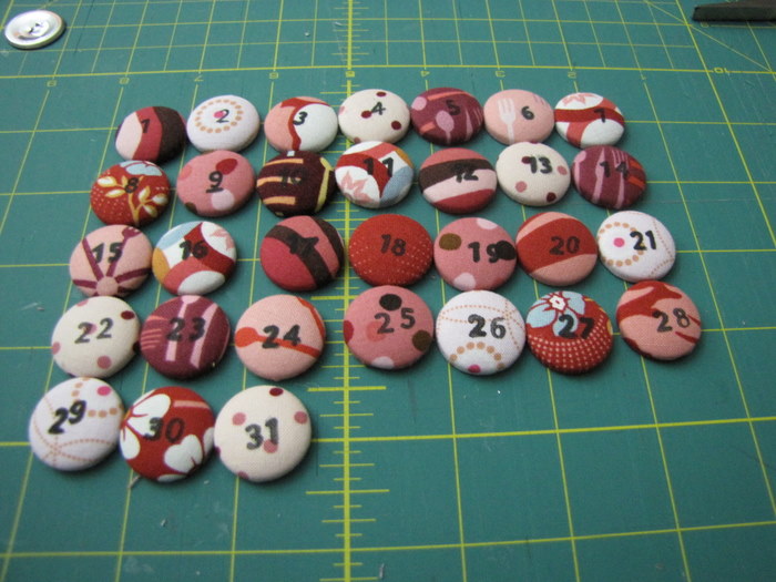 This project also gave me an excuse to use the first of the gift cards my mom gave me for Christmas. I’ve been meaning to buy grommet pliers for a while now since so many projects call for them. So I used her gift card to buy a gadget that will help me with a bunch of other projects, and to buy the buttons and trimmings for this calendar. Perfect!