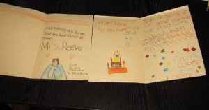 They kept asking me questions, like the name of my favorite book, my favorite colors, how to spell “librarian.” So I knew they were up to something, but it still made my day. Apparently I am “Queen Mrs. Reeve.”
