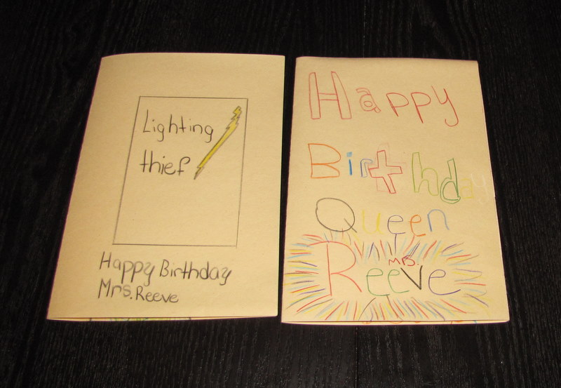 More than the snow day, what really made my day this afternoon were these birthday cards that 2 of my 4th grade girls made for me. Their class had a Game Day today, and this is what they decided to do with their free time in class.