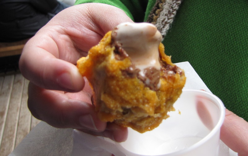 They had deep fried Cadbury cream eggs. I decided to splash out and try one on my birthday celebration day.