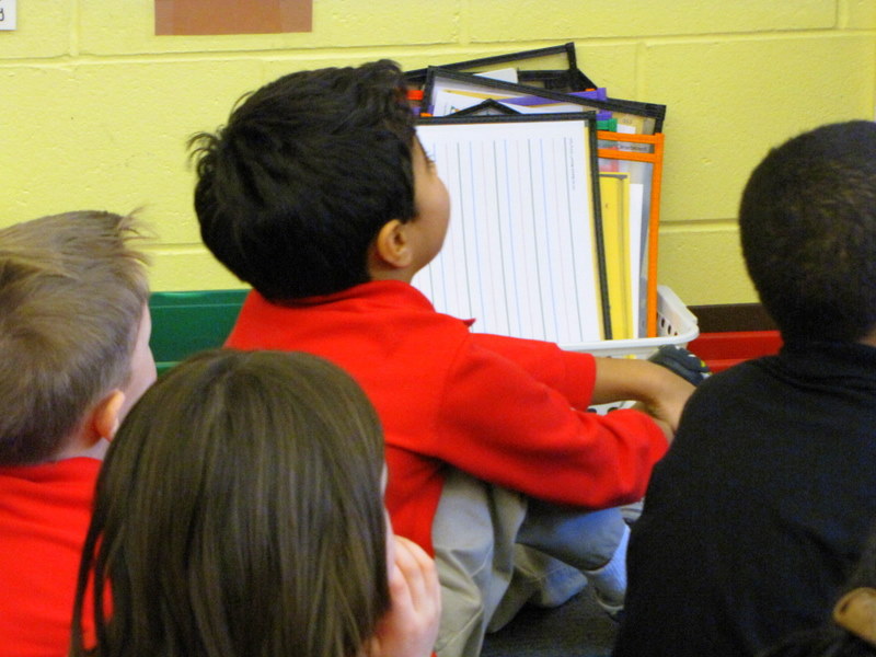 The 5th graders expertly show the little guys the pictures before turning each page. My work here is done!