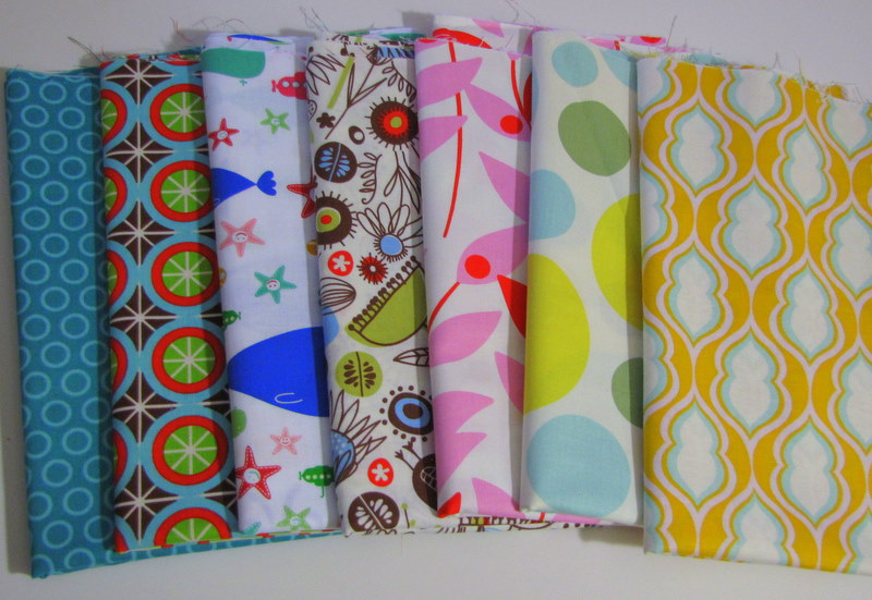 Pennington Quilt Works had a 20% off sale last weekend, and I took advantage of it. Those goodies arrived the other day, too. From left to right: two prints from the Riley Blake “Wheels” collection, the whales from Cosmo Cricket’s “Snorkel” collection for Andover, a print from the “Wild Thyme” collection by Carolyn Gavin, and 3 prints from Heather Bailey’s “Nicey Jane” collection for Free Spirit.