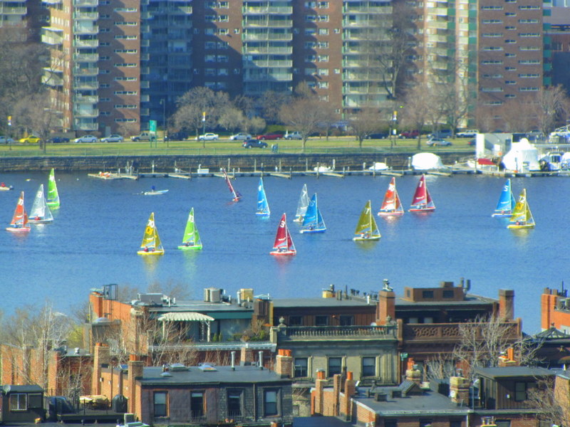 It was freezing outside today, but that didn’t stop the Charles River from filling up with sailboats.