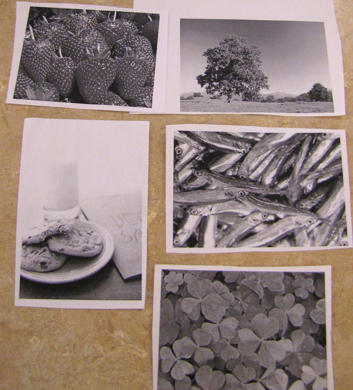 For that same book I also printed out these photos to show them the different things that Bear ate. They had to try and remember one of the things, then I would show them the picture of what it looks like in real life. Strawberries, grass, cookies (they didn’t understand honey cakes), fish, and clover.