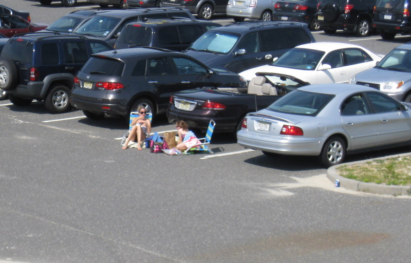 This mother and daughter (I assume) set up camp right in the parking lot. We had no idea why.