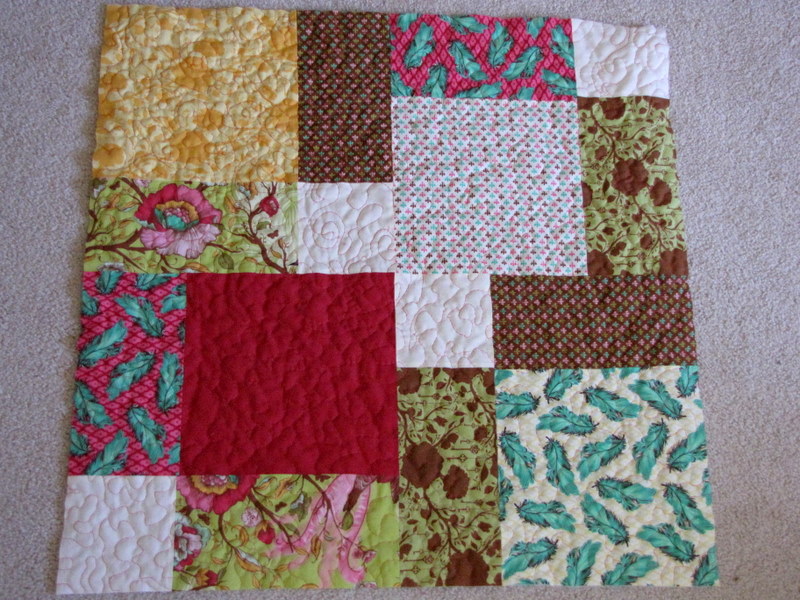 AND, this was finally a chance for me to try some free motion quilting. In the past I’ve always done lines or stitch in the ditch, never swirly improvised stitches. I haven’t had the right food, the project was too big, etc. So this was perfect, and I’m loving this whole free motion business.