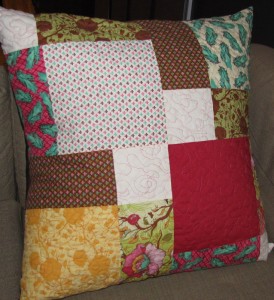 Finally! I have made a new giant pillow to replace the crusty old bed pillows I use for lounging around on the couch. I’m completely in love with this cushion, and next I’m making one for Adam in manlier colors.