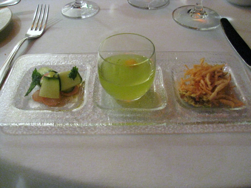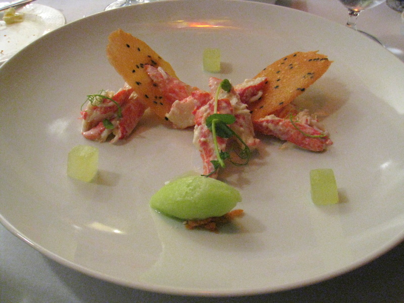 My cold crab salad with melon, cucumber sorbet, and sesame crisps. Yum!