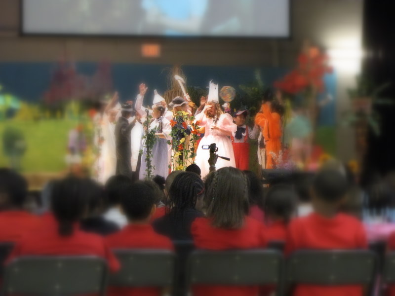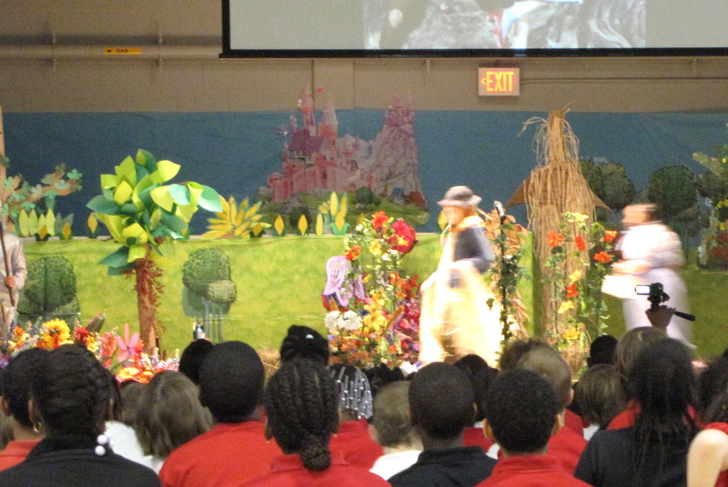 The play was The Wizard of Oz, but with figures from black history woven in. So instead of a tornado, Dorothy falls asleep studying for a social studies test on black history and wakes up in Oz. As she meets the Scarecrow, Tin Man, and Cowardly Lion, she also learns about figures throughout American black history that represent the traits of brains (Mae Jemison), heart (Aretha Franklin), and courage (Rosa Parks, Bessie Coleman). It was so fantastic, the costumes were way better than anything I remember from elementary school plays, and the set was spectacular. And those kids did such a good job!