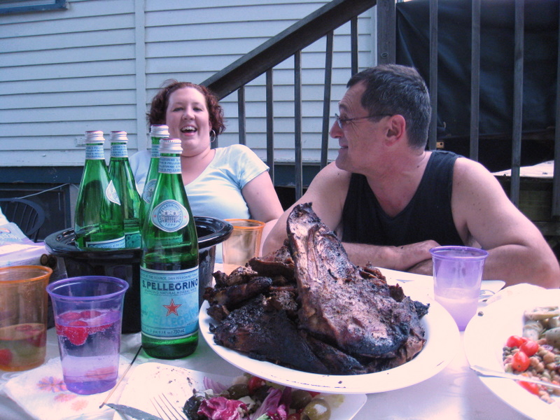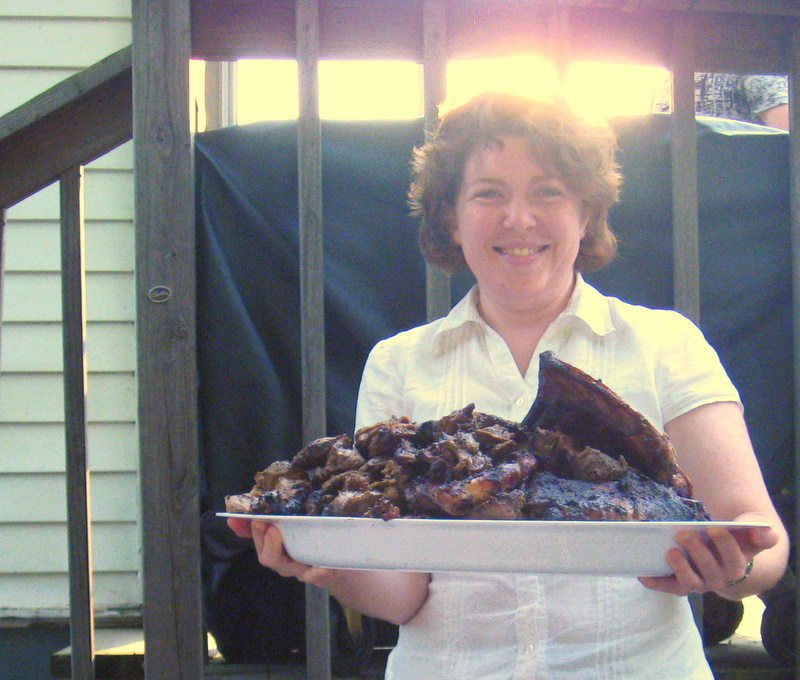 Our hosts, Audrey and Nick, grilled a whole lamb for us. This is their neighbor Heather modeling the meat plate.