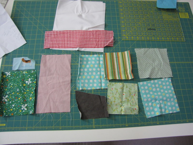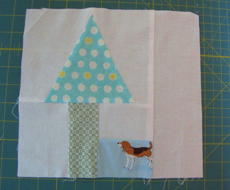 I made one big tree block that unfortunately is more like 9.5″ square than the 10″ Lael asked for. I hope she can still use it! She sent me the scrap with the dog on it, I had to use him.