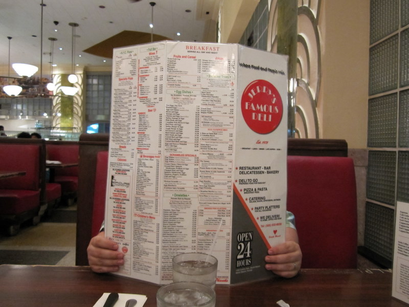 One of the giant menus from Jerry's Famous Deli. Honestly, it's a cool space but way too overpriced.