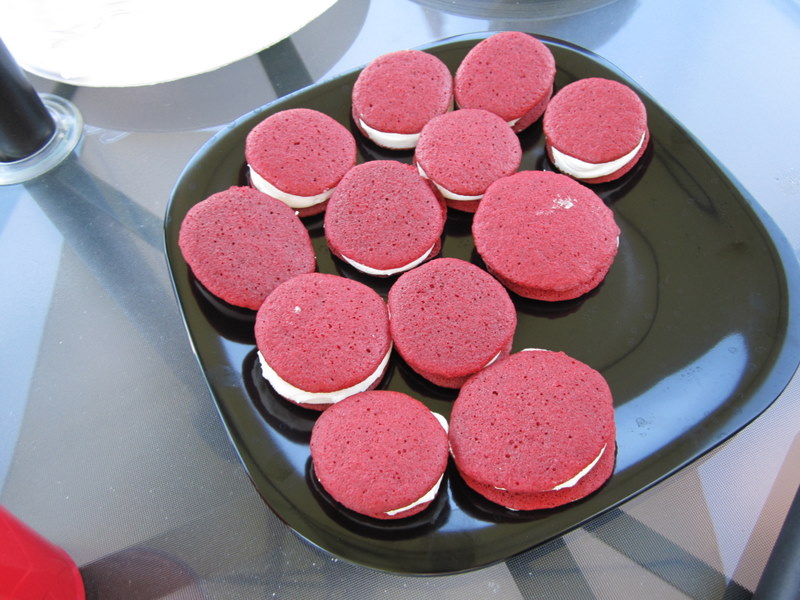 Maggie made some festive AND delicious red velvet whoopie pies.