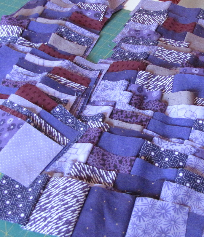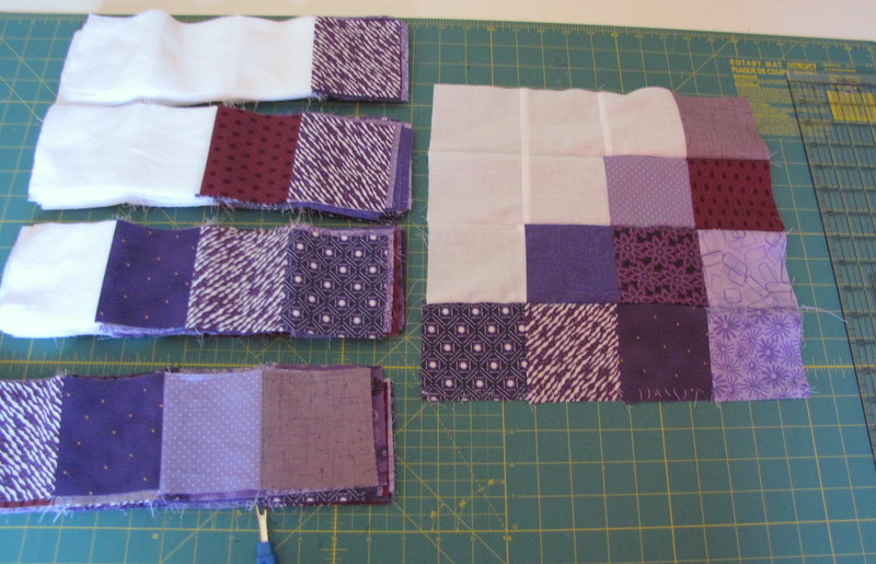 I’ve cut out all the pieces for this quilt, which I’m still keeping a secret. I’ve sewn 100 rows of 4 squares together, and now I’m working on piecing the rows of 4 into 16 piece blocks.