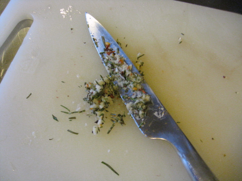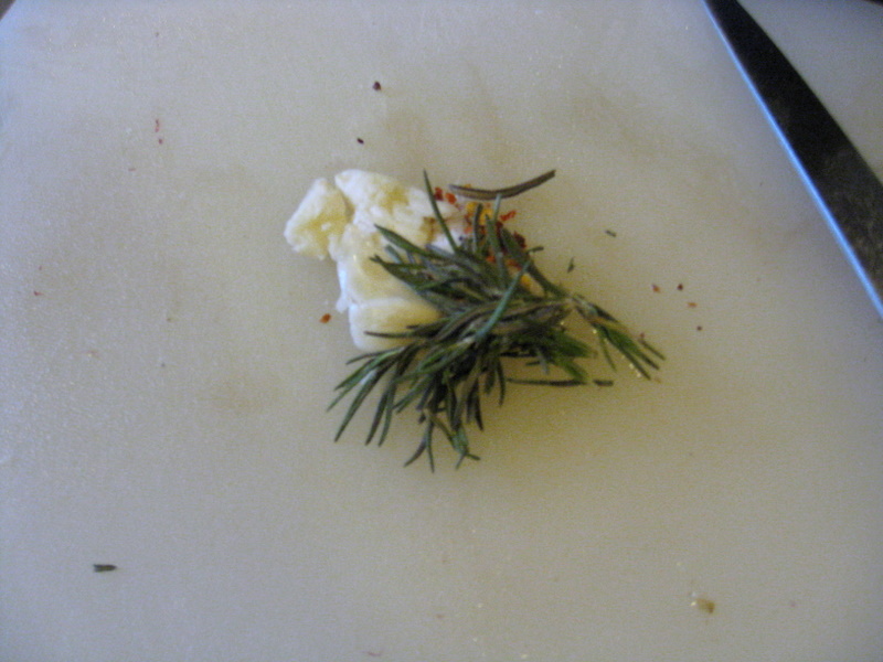 Pile the rosemary leaves, garlic, 2 teaspoons salt and the red pepper flakes on a cutting board, then mince and mash into a paste using a large knife.