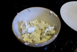 Fold in the goat cheese, season with salt, to taste, and let cool.