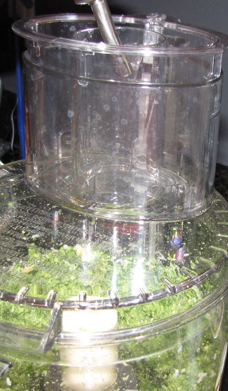 Then process it until it’s finely chopped. Drizzle in the oil while the motor is running.