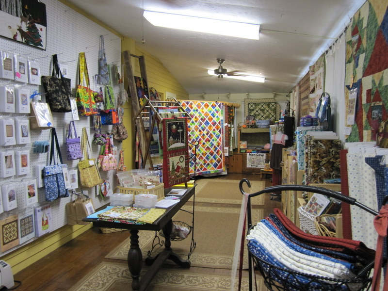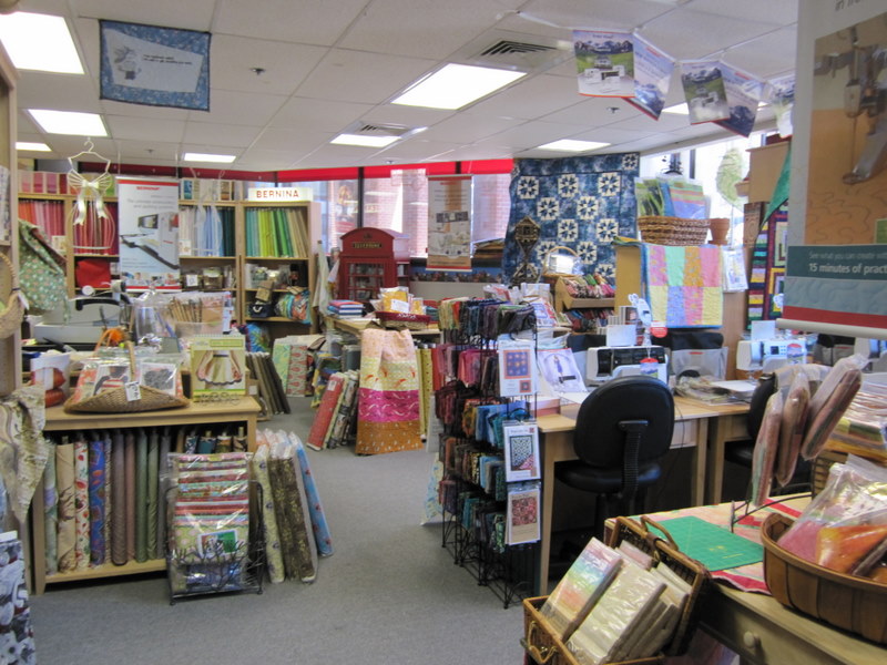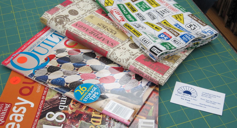 First up was The Quilt Patch in Bedford, NH (that’s Sue in some of the photos). Cute shop, my mom was in heaven here. And Sue was really sweet. I got a couple of fun prints and some 1/2 price old magazines.