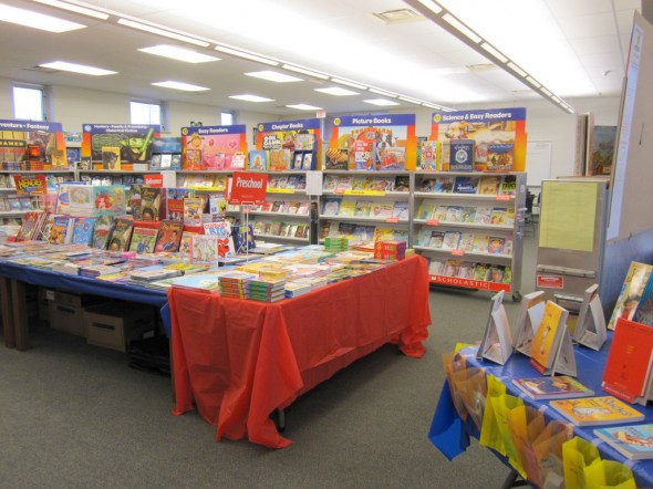 The library has been taken over by the Book Fair this week. This is the 1st time it’s ever been in the library at this school, it seems to be going well. Everyone likes it in the library, but boy am I tired! Each class is like a little shopping tornado that comes into the room. Today is the last day of it for me. Tomorrow I’m at the NJASL conference, and the fair packs up by noon. It’s been an experience.