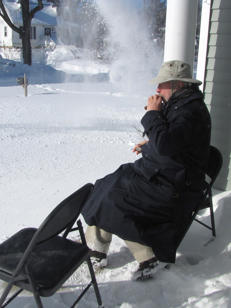 My father-in-law loves a holiday cigar, no matter what the weather. So he watched his sons shovel our driveway.