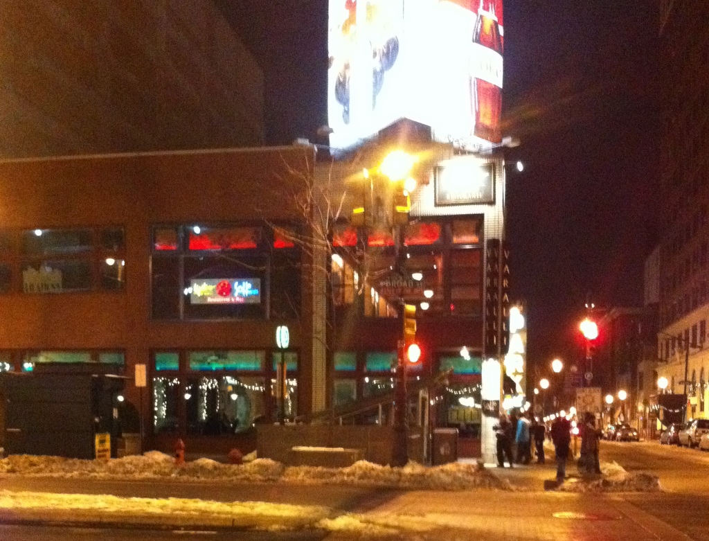 We had a super delicious dinner at Sotto Varalli (Upstares was closed until NYE, and we were there on the 29th!). Here is a terribly wobbly photo taken from across the street post-dinner, but trust me when I tell you it was fabulous. And it had possibly the most fabulous waitstaff in the history of dining. I loved this place, and the Veal Piccata was delish.