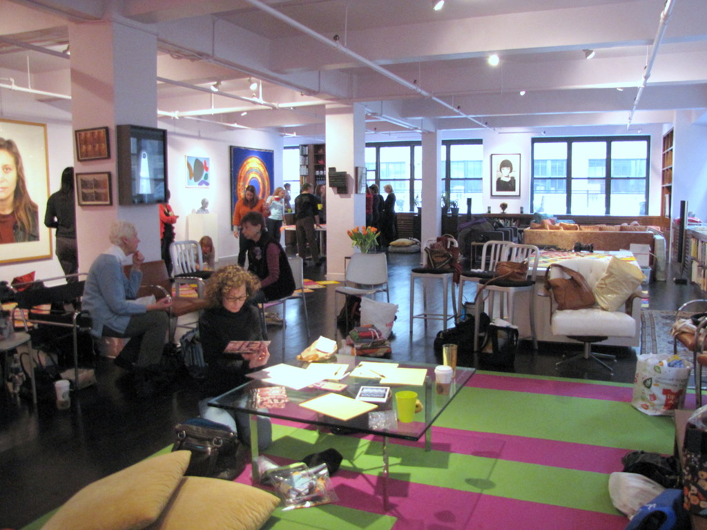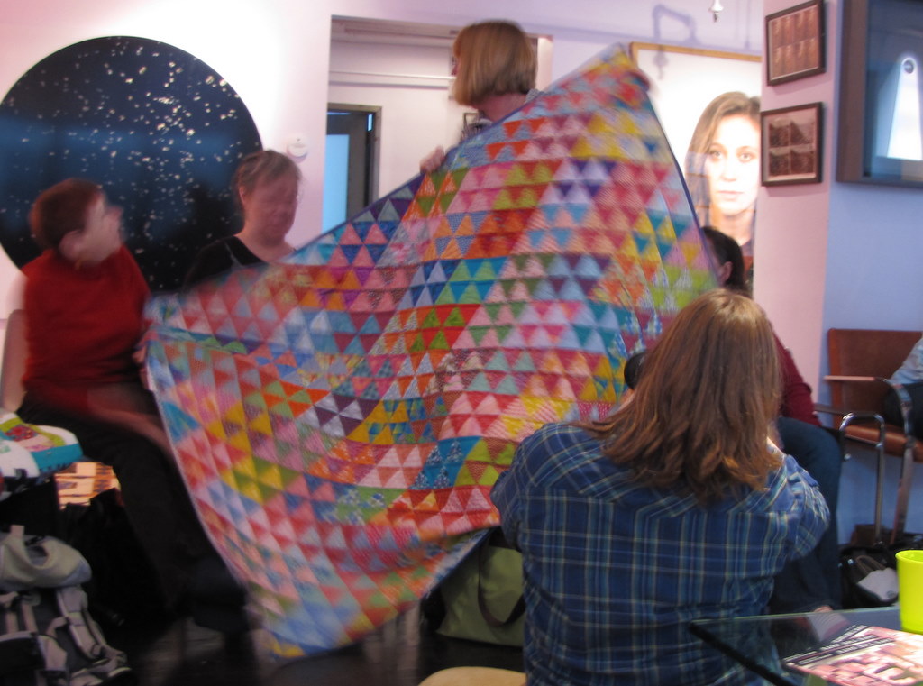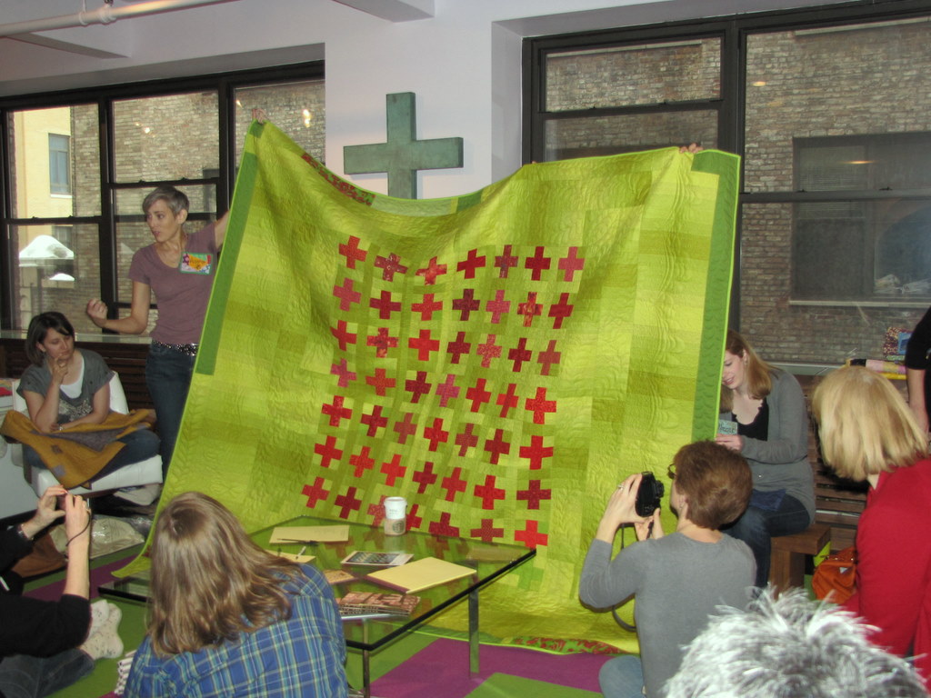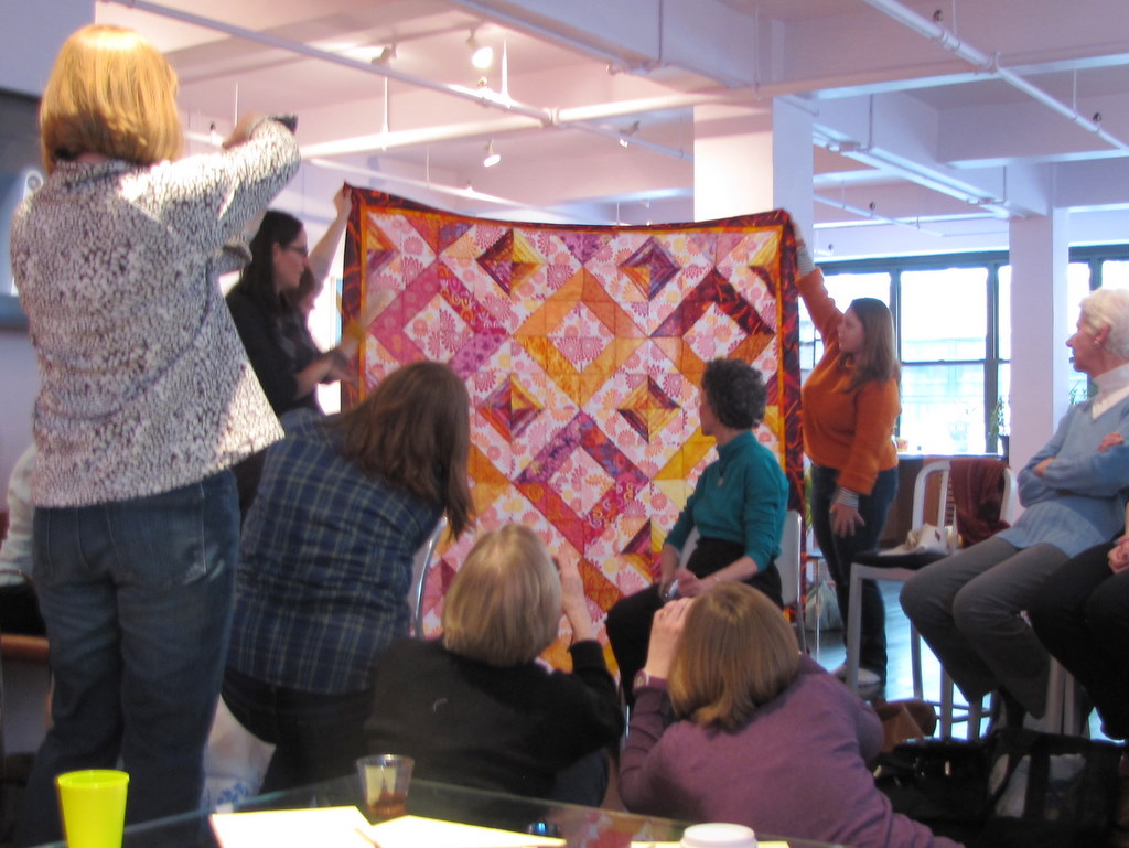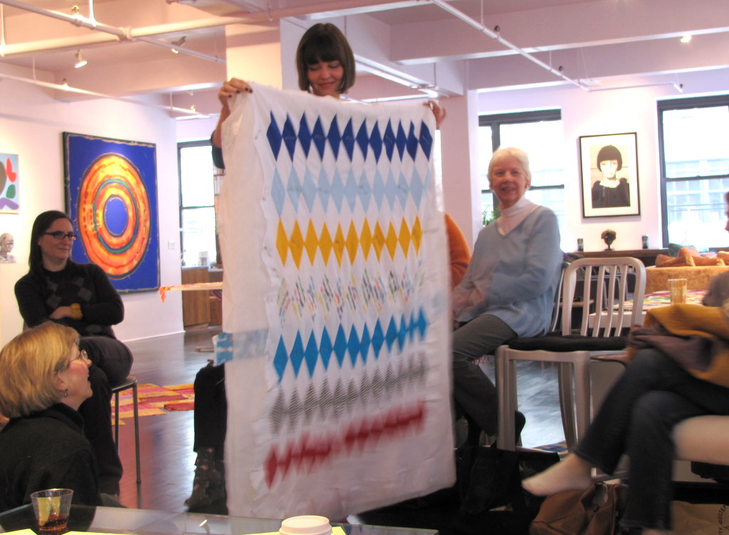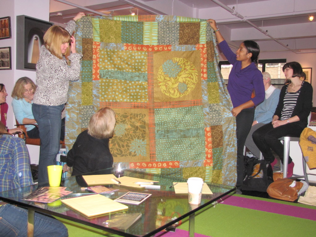 Our hostess Victoria’s amazing loft, filled with quilty ladies chatting away.