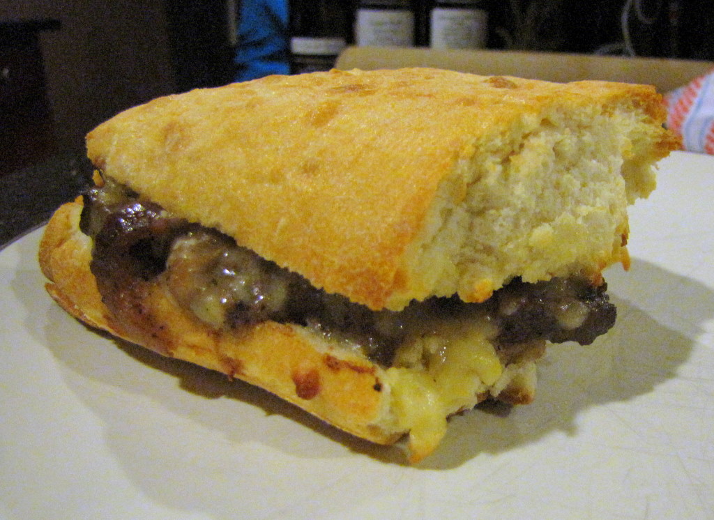 The original recipe called for onion rolls, but I had ciabatta in the freezer and used that instead.