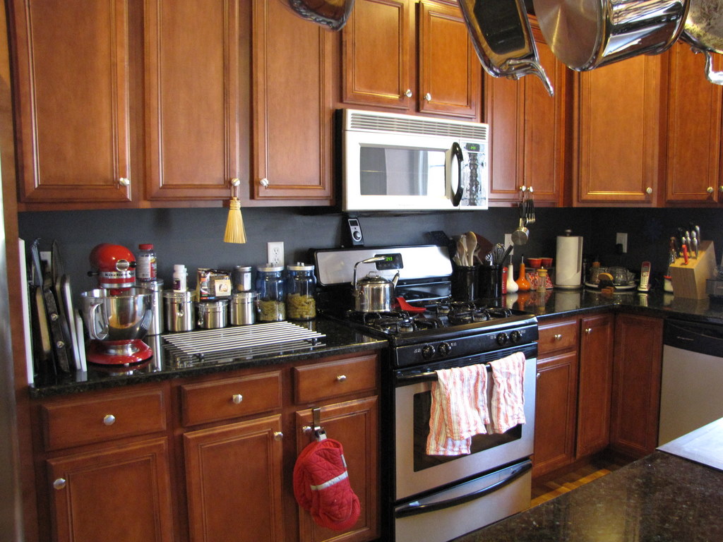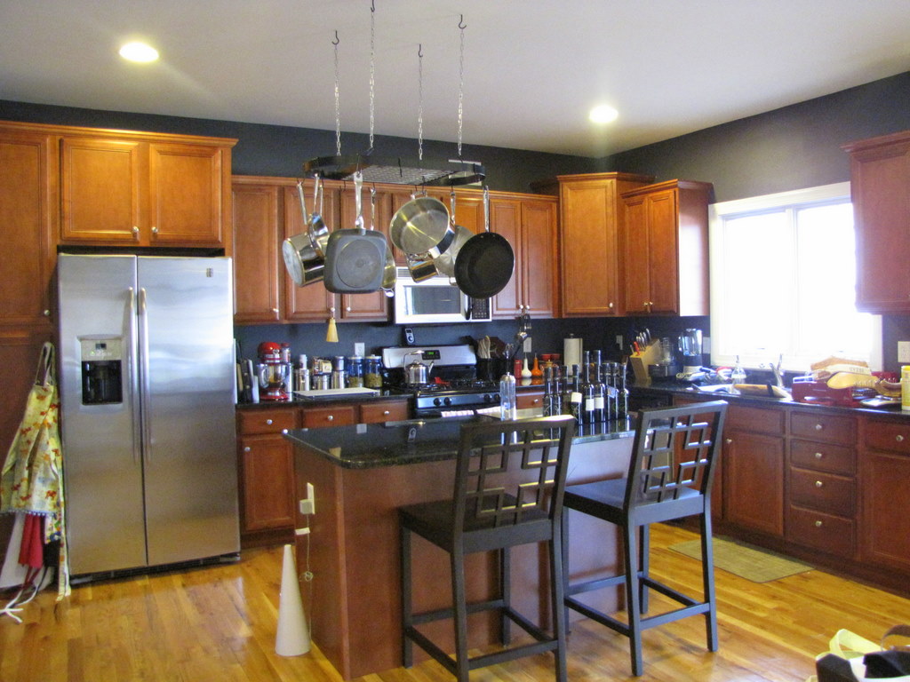 I have come to LOVE my kitchen, but when we first moved in I was far from excited about it. The walls were originally off white, which was a really unfortunate color with those cherry cabinets. We had the entire kitchen and living room painted charcoal gray, which made it 1000x better instantly. Adam’s still not a big fan of the cabinets, he wants a much more modern and slick looking kitchen. The cabinets have grown on me, too. I spend a LOT of time in this particular room of the house, so I’ve gotten comfortable in it.