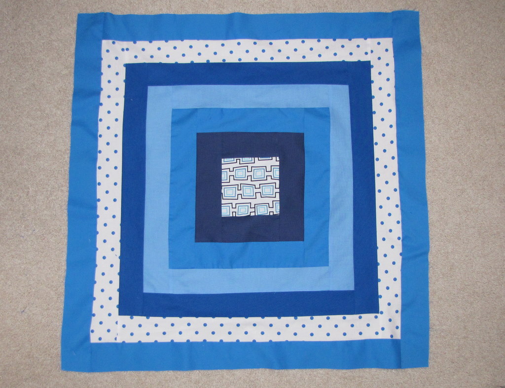 This is my progress so far. I didn’t make it to the March Philly Modern Quilt Guild meeting, and I haven’t finished the project. Since I started this for the March challenge, I’m not sure what I’ll do with it now. It’s about 28″ square. I’m thinking of possibly working it into a full-size quilt, but I haven’t decided for sure yet. This is going in the unfinished for now.