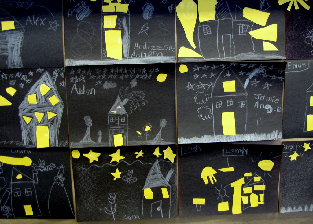 The 1st graders finished our Caldecott unit and completed their rite of passage in Mrs. Reeve’s library class, the ceremonial House in the Night-inspired drawings. Love them this year!