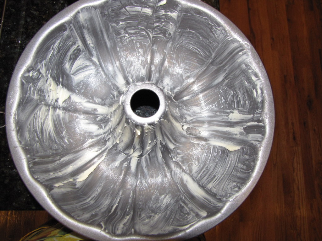 Adjust oven rack to medium-low position and heat oven to 200 degrees. When oven reaches 200 degrees, turn it off. Butter Bundt pan with 2 tablespoons softened butter. Set aside.