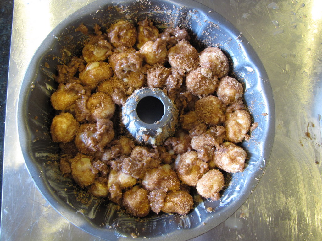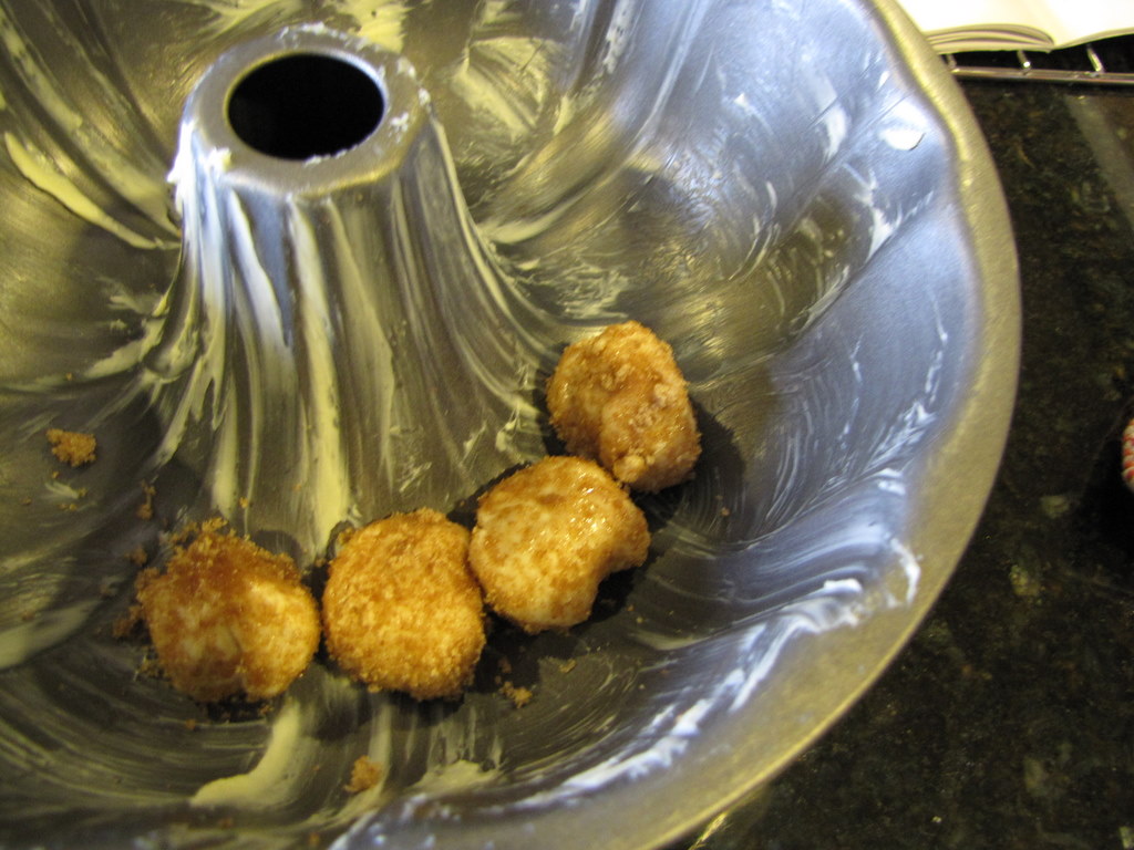 Layer balls in Bundt pan, staggering seams where dough balls meet as you build layers.