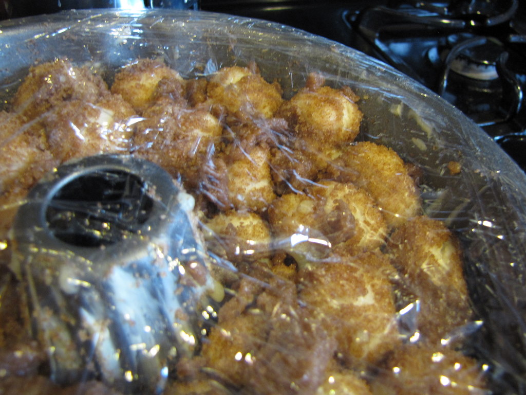 Cover Bundt pan tightly with plastic wrap and place in turned-off oven until dough balls are puffy and have risen 1 to 2 inches from top of pan, 50 to 70 minutes.