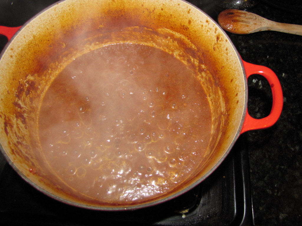 Boil the braising liquid until reduced to 2 1/2 cups, about 20 minutes.