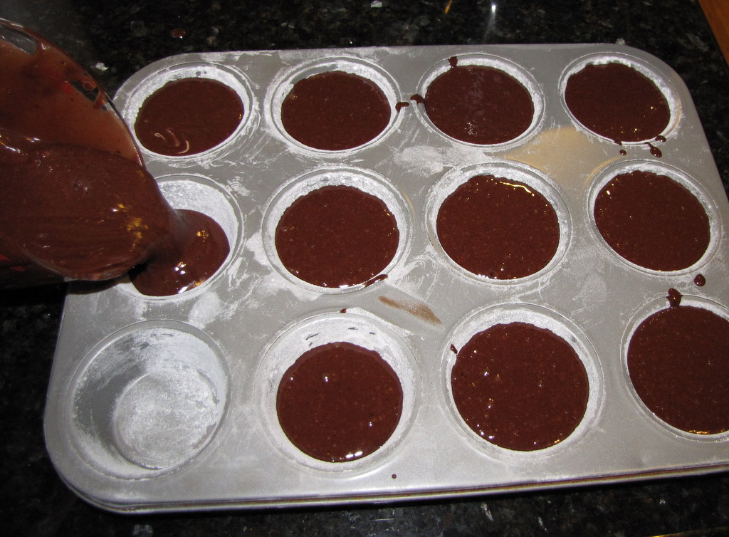 Divide batter evenly among muffin cups. *NOTE: The batter is thin, so I poured it into a big measuring cup and used that to pour out the batter.