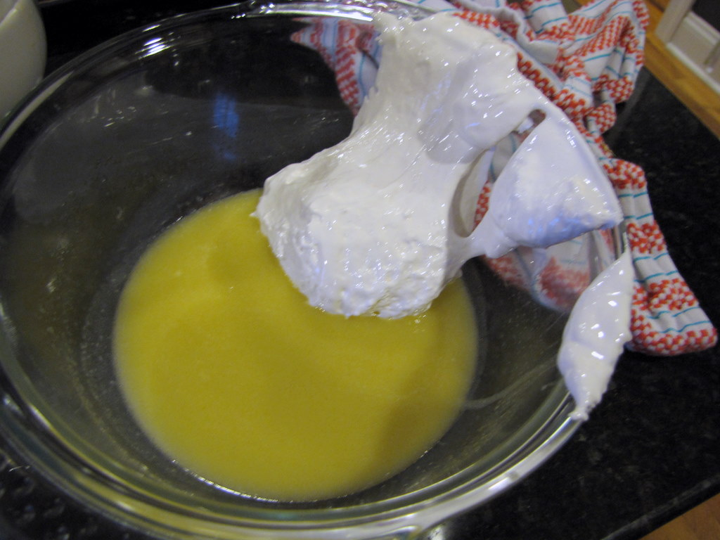 Let mixture cool until just warm to touch, about 5 minute, then whisk in marshmallow creme until smooth. *NOTE: I had to pop the mixture into the microwave for a couple of 30 second bursts to get the Fluff completely melted and mixed. It turned out fine that way.