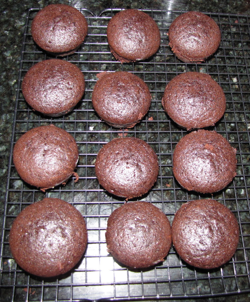 We’ve had a rough work month here in the Reeve house, lots of big projects with big stress. One day a couple of weeks ago when things were particularly stressful, I decided I needed something whimsical to lighten things up. I remembered this recipe for a homemade, less artificially flavored version of the famous Hostess cupcakes, and I decided that this was just what we needed. And they were pretty great.