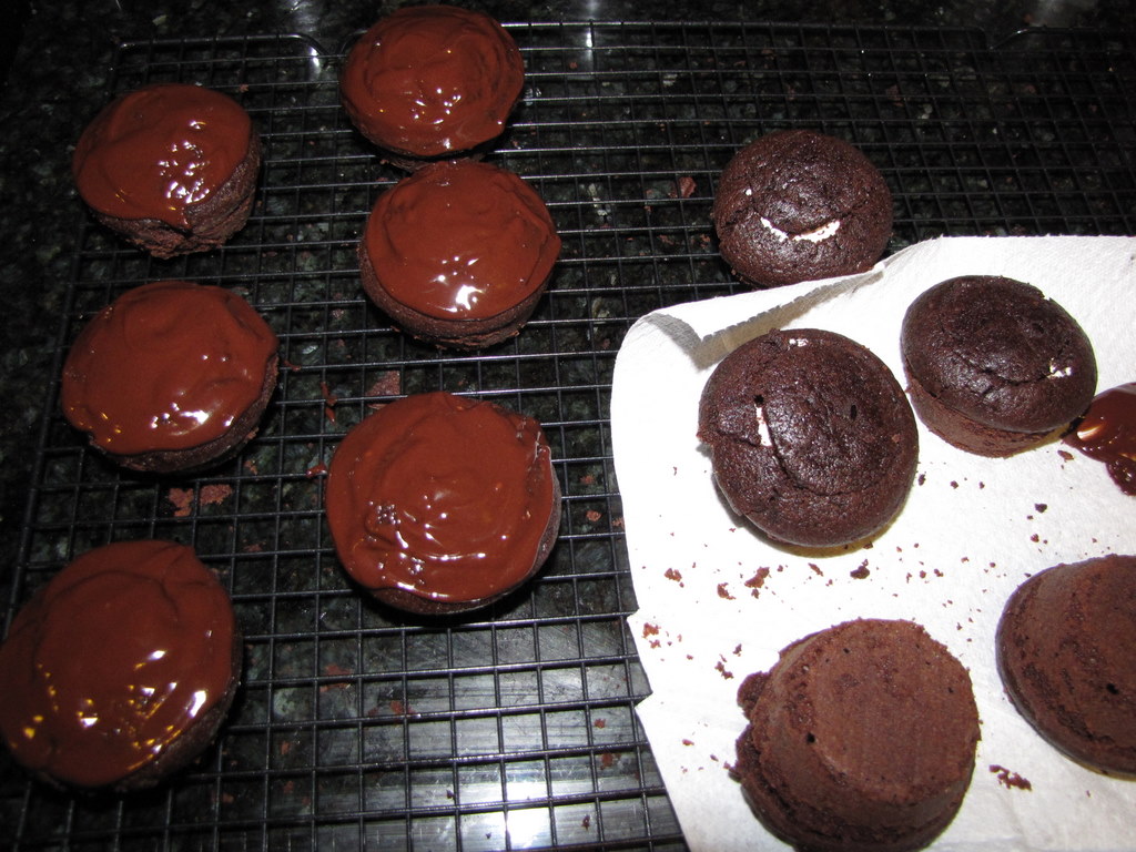 The recipe uses oil instead of butter, and you can tell the difference in the flavor. But, the oil makes them ridiculously moist, and it isn’t a bad flavor. Combined with the marshmallow filling and chocolate glaze, it all works. And I have to say, these are best on the 2nd day. After storing them in my cake dome, they were absolutely perfect the next day. Not an exact flavor replica of the original, but I think even better.