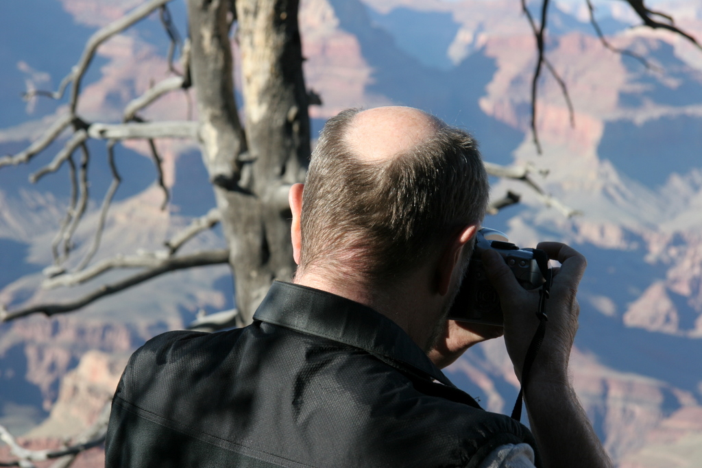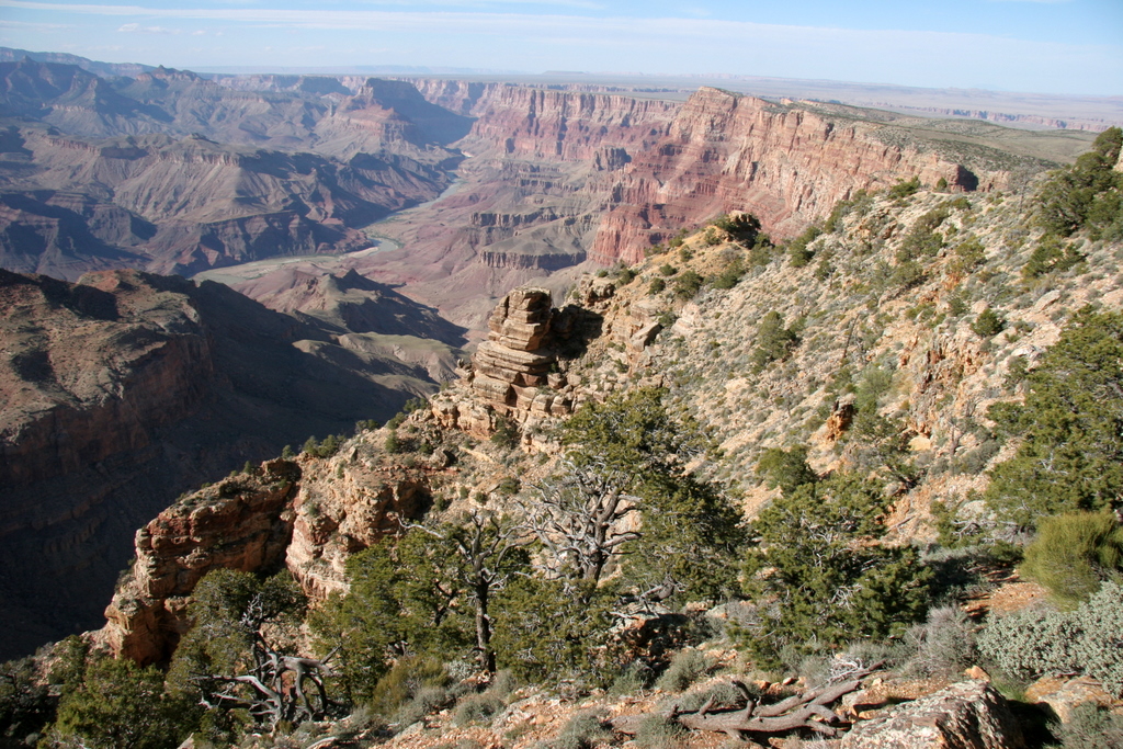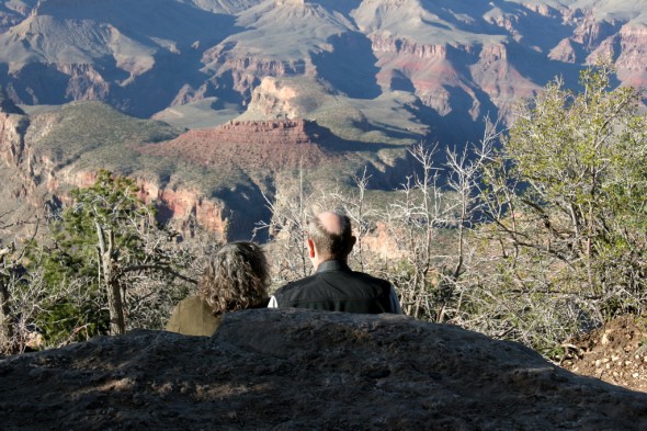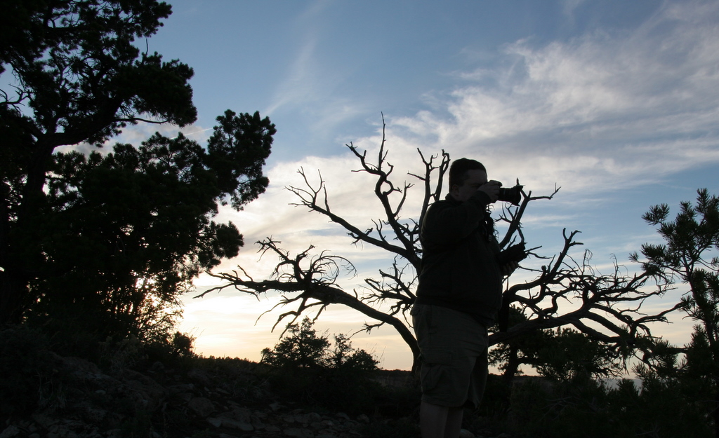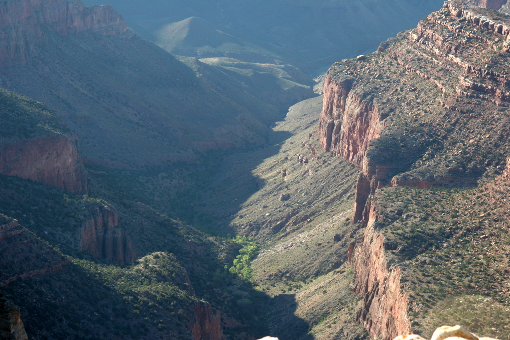 This was my turn to freak out, when Adam climbed down onto this ledge. That's as far as he went, having the Canyon on both sides of where he was standing was too much. Too huge.