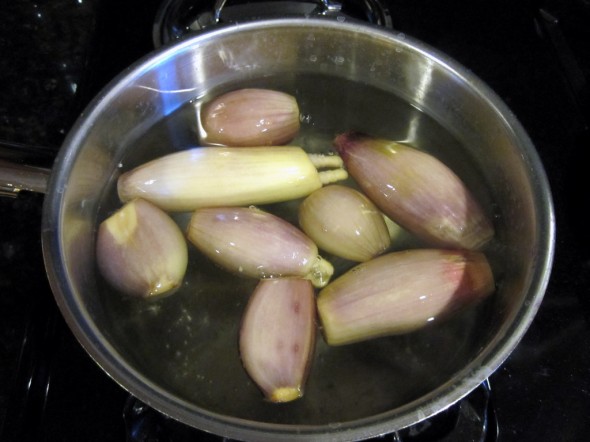 Using a slotted spoon, transfer the carrots to a bowl. Add the shallots to the saucepan and cook for 4 minutes.