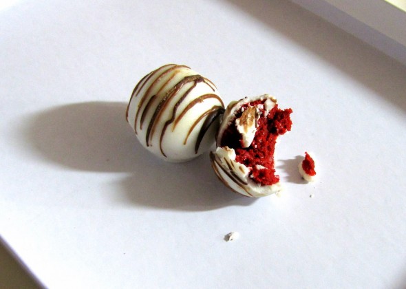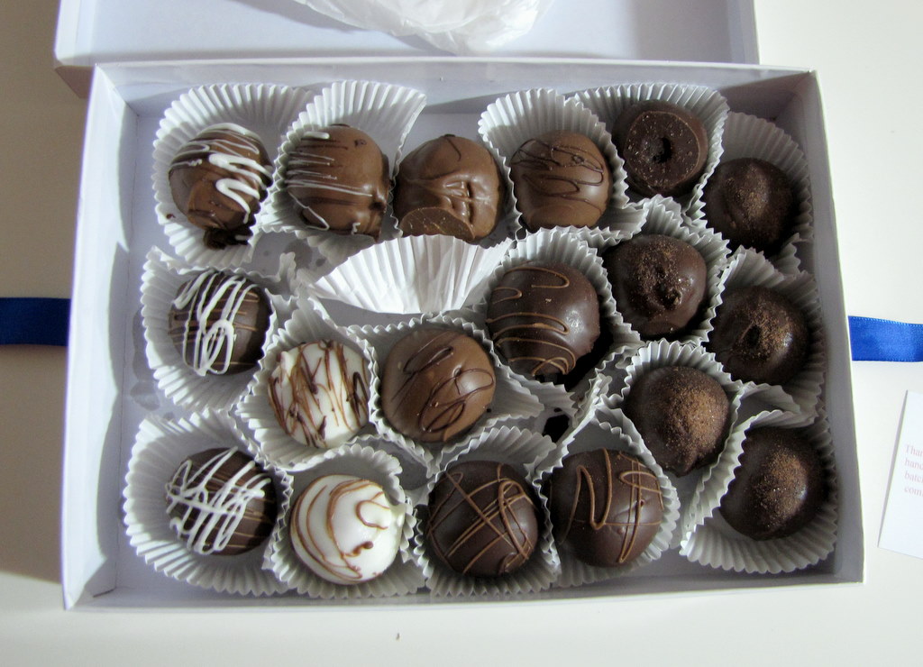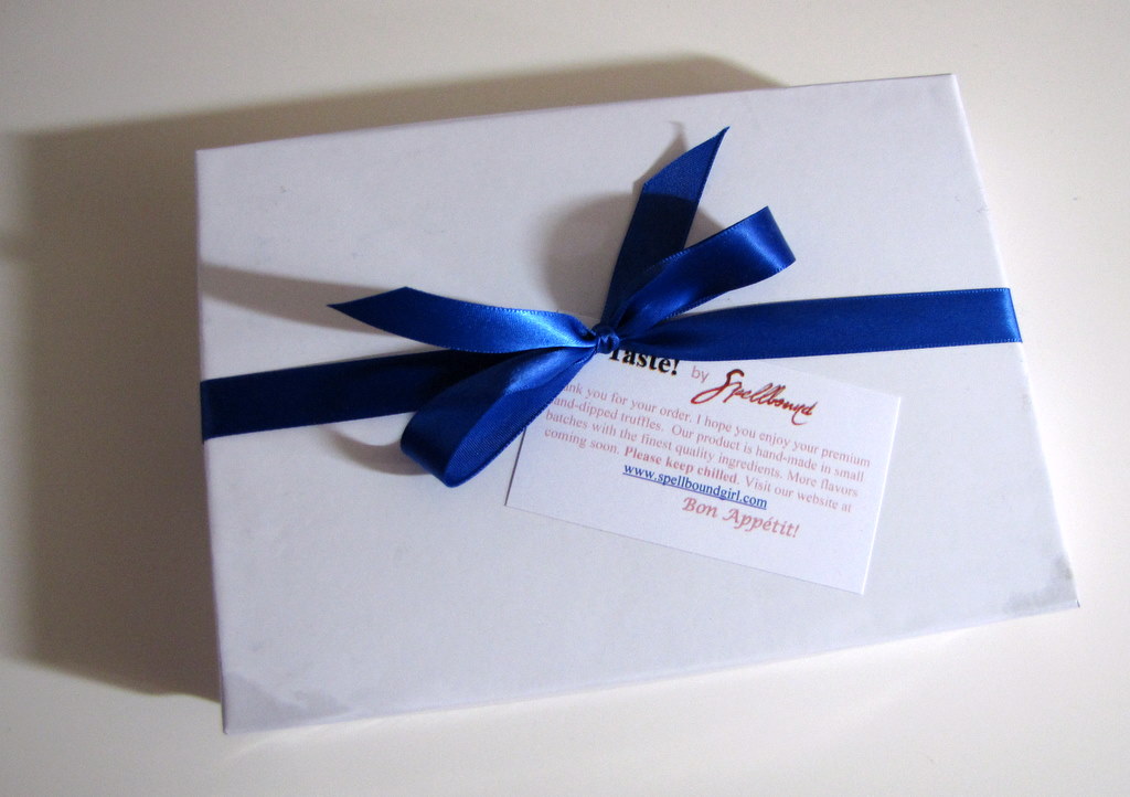 Oh. My. Heavens. I heard about Spellbound Girl’s Taste! truffles on the Elvis Duran Show at the end of April, and I ordered some that day. Red Velvet, Cookie Dough, and Dark Chocolate. I’d actually completely forgotten about them, they take 2-3 weeks to shop. And then when I got home today they were waiting to surprise me. And I am in truffle decadence heaven. Seriously, Adam better get home soon or there won’t be any left to share. Go get you some, right now.