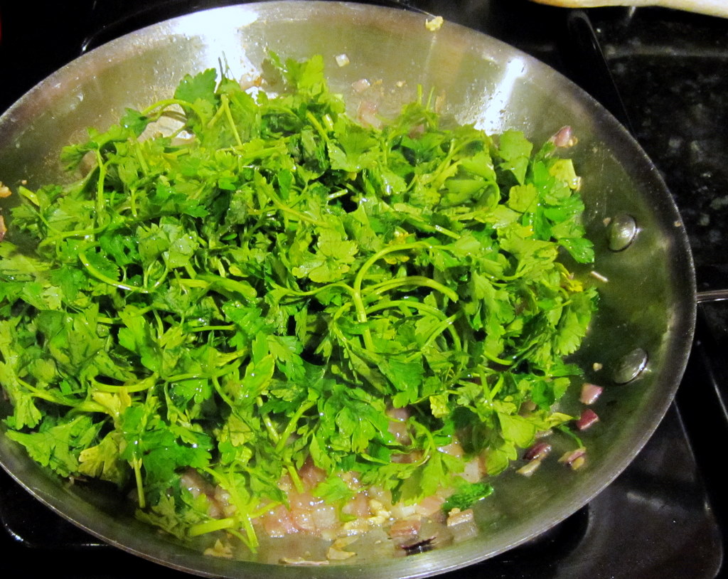 Remove the parsley from the heat and season with salt and pepper.